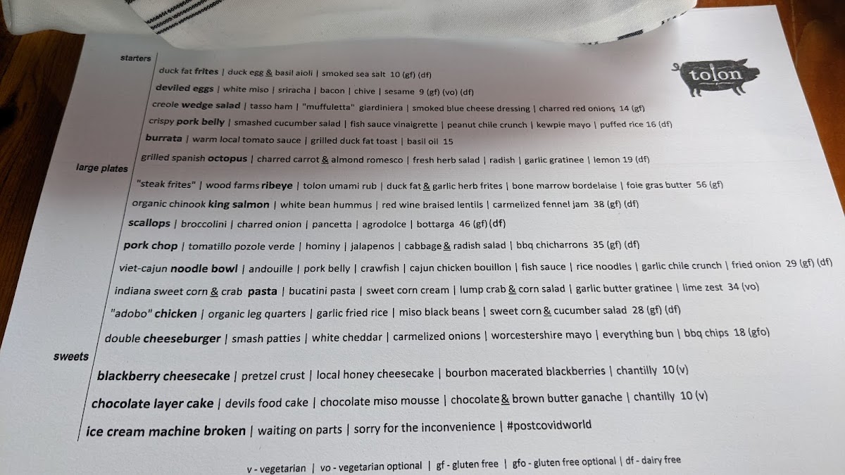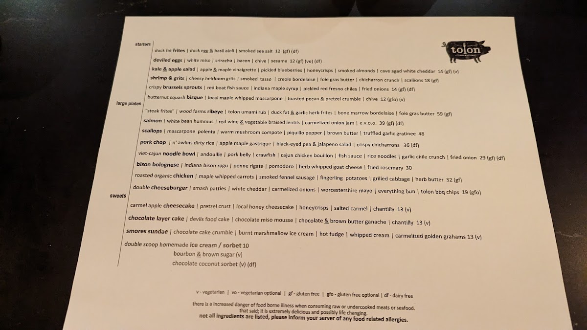 Welcome to Tolon, a culinary gem nestled in the heart of Fort Wayne. This vibrant eatery offers an exquisite menu that marries fresh ingredients with bold flavors, providing a delightful dining experience. Dive into the Chopped Kale Salad for a refreshing start, featuring a delicious apple maple vinaigrette and crunchy pumpkin seeds, or savor the rich Chicken Salad harmoniously blended with smoky flavors and vibrant charred peppers. Don’t miss the unforgettable crispy pork belly with cornbread waffle, which has garnered rave reviews from patrons.